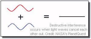 So what's the 'best' pulse frequency? Again, there is no 'best' as it has to relate to the other two operational parameters. Some pulse circuits are blazingly fast. Others are so slow they can be detected by the human eye with ease. Here's something of a trend, however. While not definitive in the absolute sense, a visible pulse rate would be far more commonly associated with LED-based pain relief devices (which so many photo-rejuvenation units incorrectly copied from) and aren't generally applicable as being best for esthetic purposes. With regret, there are devices where the 'blink rate' is made to be deliberately visible because it impresses with something of a 'light show' at skincare conventions whether it proves to be the most effective or not, based on the other parameters. This should come as no surprise as the skin care industry is no less capable of 'flash' than any other product sector. In a related aside, some may have observed and counter that high-powered IPL (Intense Pulse Light) units operate as a notably slow pulse rate. The thing is that's principally because that technology has to (in addition to taking a different approach, entirely). Most are 'flash tube' based. An electrical capacitor has to first 'fill-up' (charge) before it rapidly dumps its stored energy into the flash tube. In fact you know how you often have to wait for your camera flash to be ready to fire? It's the same thing. You and your flash are waiting for a capacitor to charge up. IPL units are just like that, only their flash tubes are operating at a specific wavelength. And, again their entire approach to light-based skincare is different, often including another set or modalities. Before we move on, let it be said that we don't wish to imply that those who haven't struck an intelligent balance or engineering 'recipe' are producing products that 'don't work outright, per se. Rather, what we are saying is that there are an abundance of LED products (now, more than ever) great and small, cheap and pricey that haven't been even nearly optimized. Much more could otherwise be coaxed, but whether it be to reduce production costs or yes a matter of distributor technical ignorance or both, so much more could be pulled from the skincare procedure and at a much faster rate. Some will never know. ___________________________________________ Monochromatic Vs. Polychromatic: Isn't Having More Than One LED Wavelength In A Single Head Better Or At Least More Convenient & Less Costly? Think again. Because the answer to such a question is, most generally, no ... Devices that operate two wavelengths at once will encounter a piece of high school physics as it relates to light: Destructive Interference - where two (or more) different waveforms collide and have a cancellation effect, reducing or eliminating the desired wavelengths if they were otherwise used in isolation. Like two pebbles thrown into a pond, where the two resulting waves collide in the overlap, the individual waves become disturbed. Something easy to see with the human eye as Destructive Interference in action - would be when one combines blue and red light, say. These two wavelengths exist at opposite ends of the rainbow and, used in combination, beat one another up, as if 'natural enemies' of one another. The eye will see the mix as magenta (as a direct result of destructive interference). That is, neither pure red or pure blue, along with their base wavelengths, exists anymore nor all of their attendant benefits, not in full. Each has been significantly diminished by the other and magenta, odd though it may seem, doesnt actually exist in nature - not as part of the rainbow. Its a synthesized color. The two waves combined may result in the same amplitude, but the final output doesnt represent either of the two original waves. And all of this is true regardless of the relative output amplitude between the waves where either wavelength may have a lower output than the other. Thats just two different sized pebbles cast into the same pond. In fact, hell Given that so many in the skincare industry speak of NASA, here's an explanatory graphic we located some years ago from NASA's own website that covered the very concept of Destructive Interference (sometimes also called Wave Propogation Interference)