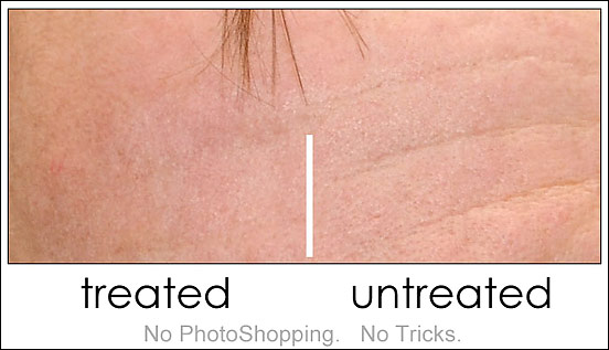 QUICK NOTATION: The camera was inadvertently closer in the before shot to the right - and the head is poised a bit lower in the frame, so the amount of 'chin lift' wouldn't be as dramatic as it might seem at quick glance. But we wanted to present Leslie's photographic comparison exactly as she presented it to us. Still, the 'trends' can be easily seen - as well as something Leslie didn't label: A far better skin texture and tone. Wonderful.